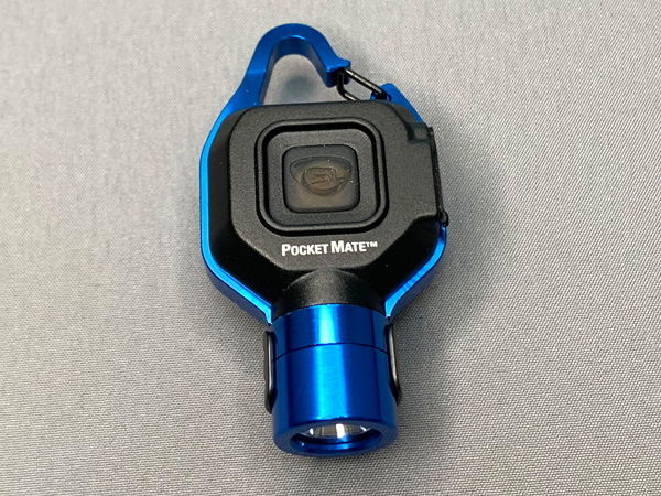 「ポケットメイトUSB」正面からのイメージ。ボディーには放熱を考慮して高品質アルミを多用していますが、「High」モードの連続点灯では結構熱を持ちますので、「High」モードは間欠的な短時間点灯に向いています。