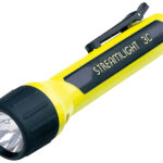 乾電池を使用するライトとしては非常に明るい16,000 CDPのプロ仕様高性能防水ライトです。リフレクター一体型のハイパワーキセノン電球を採用したことにより、配光ムラの少ないスポット光を実現しました。キセノン電球モデルは中、遠距離での使用に適しています。ライトのON/OFFは操作しやすいテールスイッチにより行います。ボディーにはクリップとストラップ装着用のリングが標準装備されています。耐衝撃ポリマー樹脂製のボディーは、絶縁性が要求される電気関係の作業にも最適です。