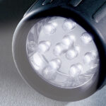 高輝度白色LEDを10灯も装備していますので光量的にも非常に明るいLEDライトです。LEDの寿命は約10万時間ありますので、実質的に交換は不要です。LEDモデルは比較的近距離で広範囲を照射することに優れ、自然光に近い白色の光で対象物を鮮やかに照らします。LEDモデルは連続点灯時間が非常に長いのも特徴で、1セットのアルカリ乾電池で300時間以上点灯し続けます。LEDと電球の相違点以外はキセノン電球モデルに同じです。