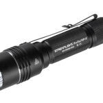 プロタックHP-Xは、煙や霧、フォトニックバリアを突き抜けて遠距離まで照射できる、最大105,000カンデラのタクティカルライトです。付属のSL-B26リチウムイオン電池1本、またはCR123Aリチウム電池2本で作動します。TEN-TAPプログラミングにより、「High/ストロボ/Low」「Highのみ」「Low/Medium/High」の3つの操作モードから好みに応じて設定可能。テールスイッチは片手操作に対応し、間欠点灯・明るさ切替・ストロボまで瞬時にコントロール可能。ボディには軽量かつ高耐久な6000系航空機アルミを使用し、MIL-SpecタイプIIのアルマイト処理により耐摩耗性も確保しています。反射防止コーティング付き強化ガラスレンズ、防塵防水性能はIP68(最大水深2mで完全防水)、加えて2mの耐落下衝撃にも対応。アンチロールヘッドや個体識別用のシリアルナンバーも標準装備。
