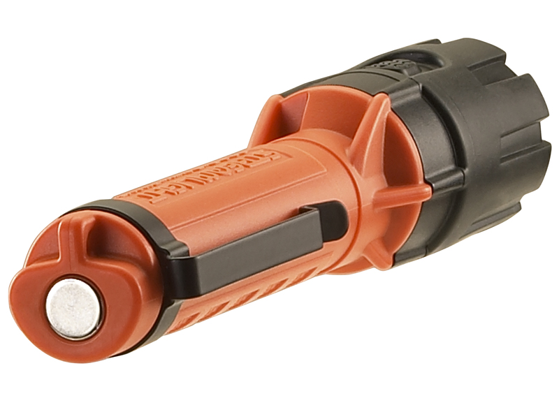 前方用には遠くまで照らせるスポット光。足下用にはより広範囲を照らす散光。2灯の独立したC4スーパーLEDをそれぞれ独立したスイッチでコントロールします。2灯同時に点灯すると、それぞれのビームが切れ目なくつながり、ブラインドスポットが起きないような配光となるよう設計されています。足下に障害物がある暗闇での安全確保に最適なライトです。クリップは本体周りを回転させることができますので、胸ポケットやリュックの肩ベルトにクリップ留めして照射角度を調整することによりハンドフリーライトとしても使用できます。フェイスキャップを下にして床に立てて散光LEDを使用すれば簡易ランタンに。テールに備えられているマグネットで金属に取り付ければ作業灯としても使用できます。IEC基準の本質防爆構造で最も厳しい0種場所対応コード「Ga」を取得。危険環境でのお仕事にも大活躍するライトです。