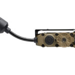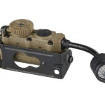 作戦行動に必要なライトとビーコンを全て搭載した純ミリタリー仕様のフレックスライト。装備の軽量、シンプル化により機動性を高めます。米軍規格STD-810H, Method 512.6を満たすIP67防塵、防水性能。3mの落下テストもクリアした強靭な構造。フレックスストークにより照射方向が自在に調整出来ますので、ヘルメットのみならずモーリーや肩ベルト、ストラップ等に取り付けて使用することも出来ます。CR123A、単3形アルカリ乾電池、単3形リチウム乾電池の全てがアダプター無しで使用できますので、サプライが限られている現場でも不自由しません。フレックスストークのLEDとは別に、本体上部に赤外線LEDによる50bpmの敵味方識別ビーコンが装備されていて、フレックスストークのLEDとは関係なく点灯可能です。白、赤、緑、青、赤外線の各LEDは「低」、「中」、「高」、「ストロボ点滅」の4点灯モード。引いて回すタイプのセレクターにより点灯するLEDを選択して、プッシュスイッチにより「低」→「中」→「高」の順に切り替えます。スイッチをダブルクリックすることにより「高」の明るさで「ストロボ」となります。敵味方識別ビーコンはセレクタースイッチの後ろに伸びているレバーをセンターから左右へ操作して作動させます。標準付属のクリップにより軍用ヘルメット、モーリーや肩ベルトに取り付けが可能。オプションのアクセサリーによりヘルメット等のレールマウントへの取り付けも可能となります。